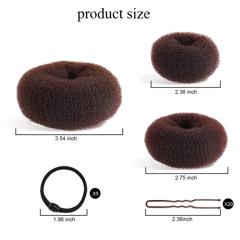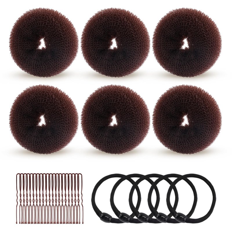 - 【Bun Maker Set】The hair accessories kit contains 6 pcs Medium size (2.75 inches) donutnet bun makers, 5 Pcs Hair Elastic Bands, 20 Pcs Hair Pins. With our bun maker for long hair, effortlessly create beautiful buns for yoga ballet dance performances and special occasions, elegant and beautiful hairstyles. Perfect shape for girl women long hair styling kit.