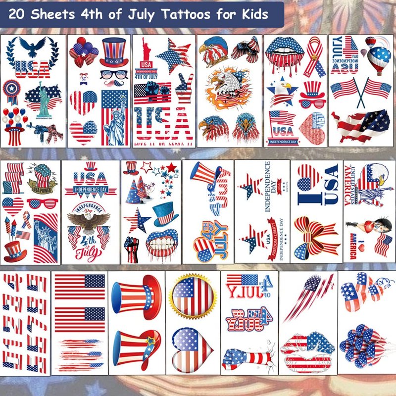 Product usage: These 4th of July tattoos are perfect for 4th of July theme party , it can also be used to gift pack