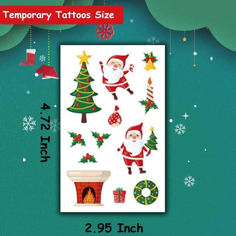 - 🎄【Widely used】These Christmas temporary tattoos can be used for Christmas theme parties, also be used to decorate candy bags and invitation cards.