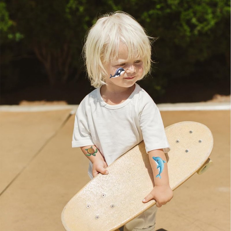 - 🐳【Sea Animals Temporary Themed Tattoos for Kids】Glitter colorful sea animals tattoos for Kids, use them as party favors and your kids will love. Perfect for sea animals themed party, birthday activities, school reward and other party events. They will be your kids' favorite small gifts.