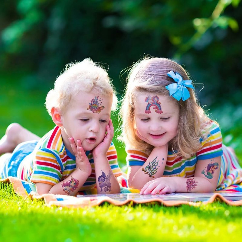 - ❤️【More Safety & Healthy Choice】These glitter mermaid temporary tattoos are made of high quality safety and green paper, Non-allergenic,Non-toxic and totally safe for your kid's skin. Simply wet the tattoo with water and stick transferred them onto your body, hands, faces and arm you like.Tattoos will last from 3 to 5 days ,it also can be easily removed with baby oil, makeup remover or rubbing alcohol.