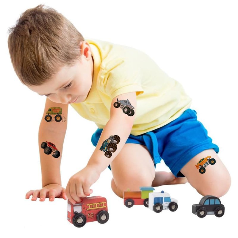 - ❤️【More Safety & Healthy Choice】These monster truck temporary tattoos are made of high quality safety and green paper, which is safe and non-toxic. Simply wet the tattoo with water and stick transferred them onto your body, hands, faces and arm you like. Tattoos will last from 3 to 5 days, it also can be easily removed with baby oil, makeup remover or rubbing alcohol.