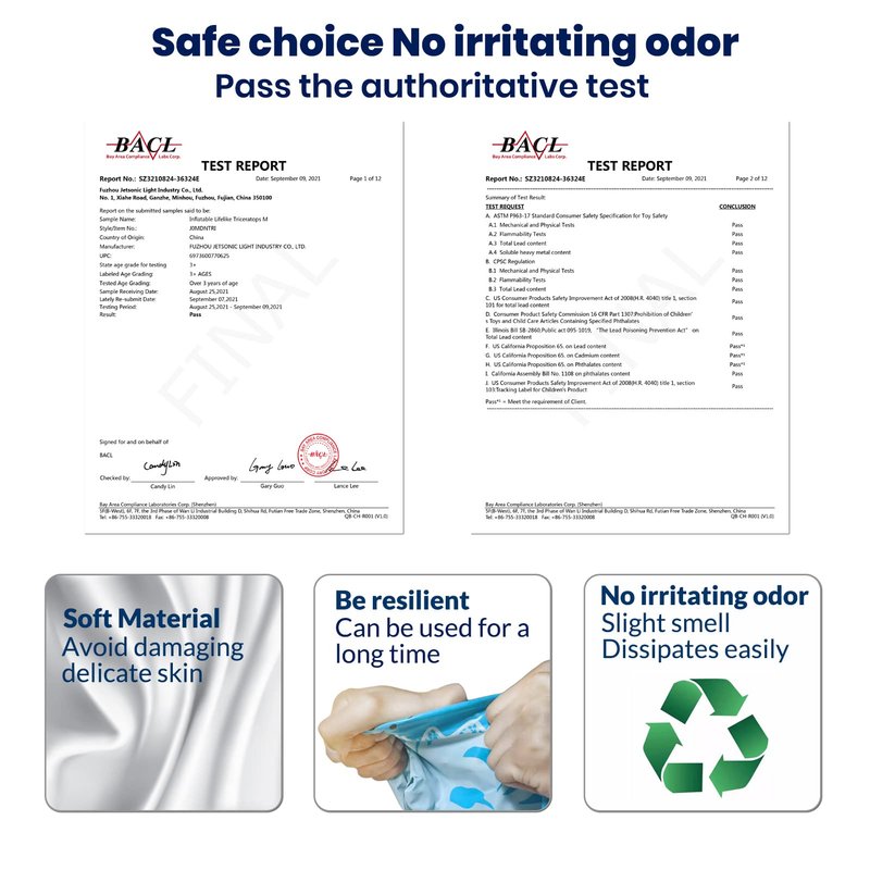- Inflatable Dinosaur toys Produced with high quality PVC material, No irritating odor