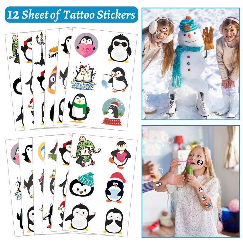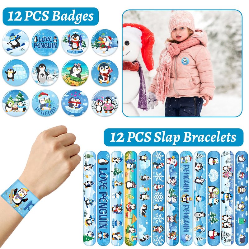 PACKAGE INCLUDE: 12 pcs penguin slap bracelets 12 pcs penguin keychains 12 pcs penguin badges 12 sheet penguin temporary tattoos (8 styles) 12 pcs penguin gift bags UNIQUE DESIGN: Customized penguin party supplies design with various cartoon penguin patterns, which full of charming winter atmosphere. Kids will love it! WIDE APPLICATION: Cute penguin party favors prefect for penguin party, penguin party decorations, penguin birthday decorations, winter party favors, winter themed party decorations, Christmas, Children's Day giveaway, classroom rewards, baby shower.