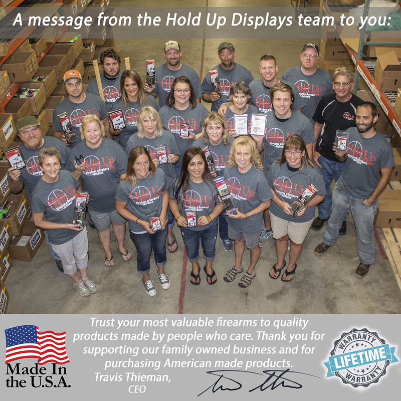 - Carefully calculated angles and tensions to fit the widest range of handguns, shelf thicknesses and depths