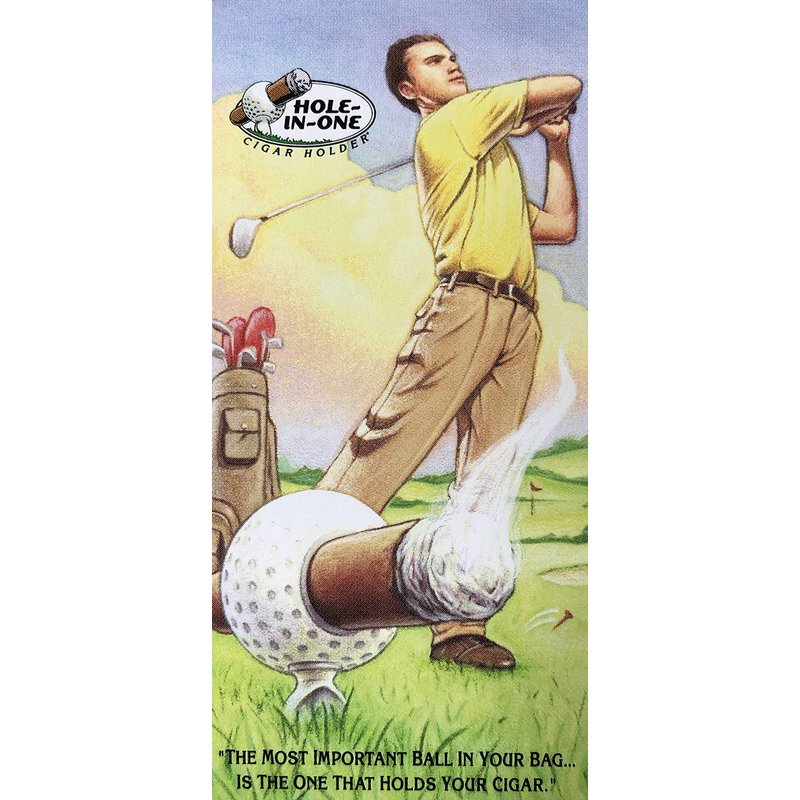 The most important ball in your bag...is the one that holds your cigar. Join Miguel Angel Jimenez in using the Hole-In-One Cigar Holder during your next round. Keeps cigars away from dew, pesticides, fertilizers, cart seats, and getting crushed! Warning: Do not smoke cigar while in holder. Do not use indoors. Do not stick pointy end in eye or other sensitive areas. Holds up to a 54 ring cigar. This is the original patented design. Proudly Made in the USA.