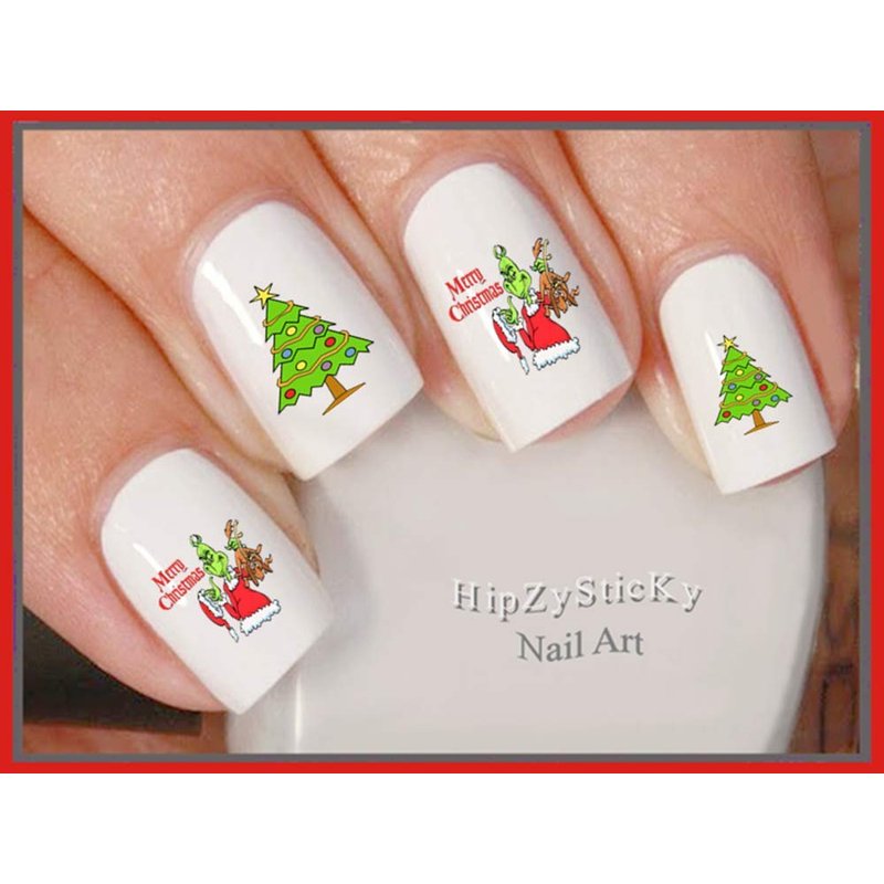 Holiday Christmas - Christmas 803X Grinch #3 Merry Christmas Tree Nail Decals - WaterSlide Nail Art Decals - Salon Quality DIY Manicure Nail Accessories Made in USA