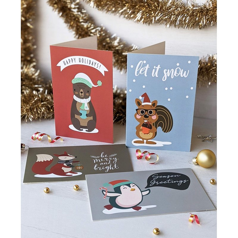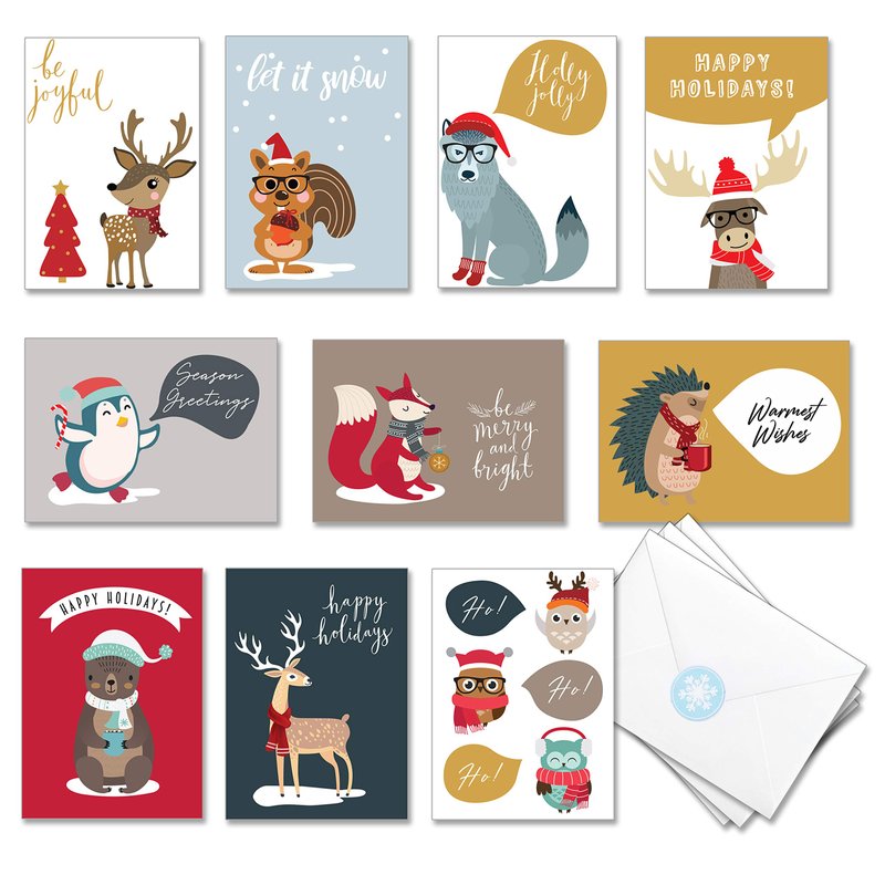 Holiday Greeting Cards with Envelopes and Stickers - Pack of 50 Merry Christmas Notes – 10 Unique Woodland Animals designs, Thick Cardstock, 4X6 Inch in a Sturdy Box, Blank Inside' (Mix)