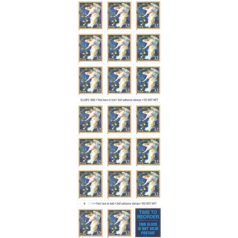 HOLIDAY GREETINGS CHRISTMAS ANGEL Pane of 20 x 32¢ US Postage Stamps 1995