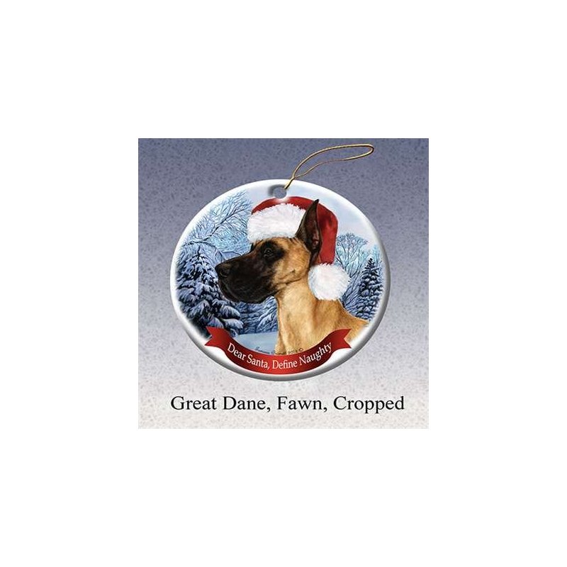 Holiday Pet Gifts Great Dane (Cropped) Fawn Santa Hat Dog Porcelain Ornament