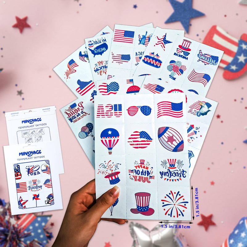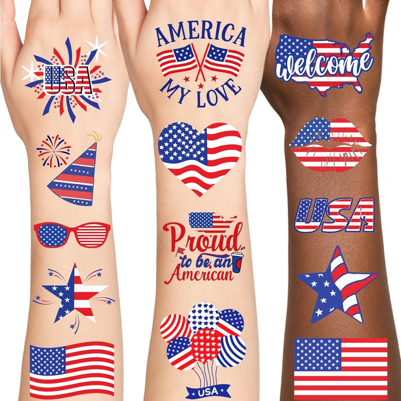 Holiday Temporary Tattoos for Kids Girls Boy Adults, American Holiday Tattoos Stickers, Holiday Party Favors Gifts, Holiday Stocking Stuffers for Kids, Holiday Goodie Bag Stuffers (USA FLAG 2)