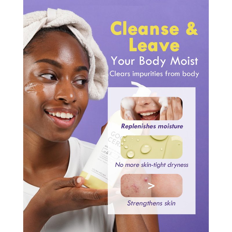 Discover the perfect sensitive skin body wash with our pH-balancing cleanser. Holika Holika Good Cera ATO Relief Oil Wash is specially formulated to maintain your skin's pH balance at 5.5, preserving its natural moisture barrier and supporting a radiant complexion. This shower oil body wash also provides gentle exfoliation, making it ideal for sensitive and dry skin. Its low-irritation, weakly acidic formula effectively removes impurities and dull skin, leaving your skin smooth, refreshed, and rejuvenated. Experience the power of ceramides, essential lipids that replenish and strengthen the skin's barrier, alleviating dryness, redness, and irritation. Our hypoallergenic and low-irritating shower gel body wash for women and men is suitable for all skin types and offers a calming cleanse, nourishing your skin and restoring its balance.