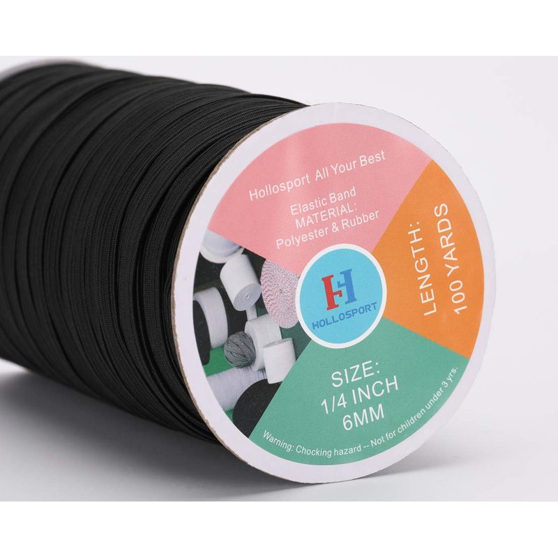 Hollosport Elastic Bands for Sewing 1/4 Inch Black, 100 Yards Thin Flat Braided Quarter Inch Elastic String Cord Rope Strap Ribbon for DIY Face Masks