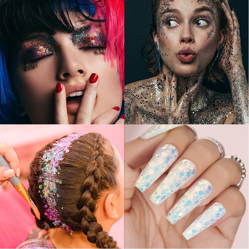 - 🌟Premium Mixed Chunky and Fine Glitter: Mixed by different sizes of small hexagon sequins, from fine to chunky, looks extra sparkling. Made of high quality polyester, can mix well with most craft material like epoxy resin, paint, glue, nail polish, wax etc. Also safe for skin and nails, easy to put on with glitter glue.