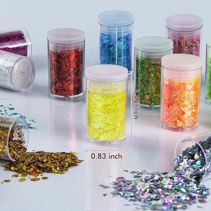 - 🎨Perfect Glitter for Crafts & Beauty: Perfect craft glitter for resin art crafts, to make glitter tumbler, glitter jewelry, glitter key chain pendants, party ornaments, Christmas decors etc., and ideal for painting, card making, scrapbooking. Also fabulous nail glitter, body glitter, eyeshadow glitter, face glitter, hair glitter, perfect you look in daily life and special occasions like wedding, party, music festival, costume event, Halloween, Christmas etc.
