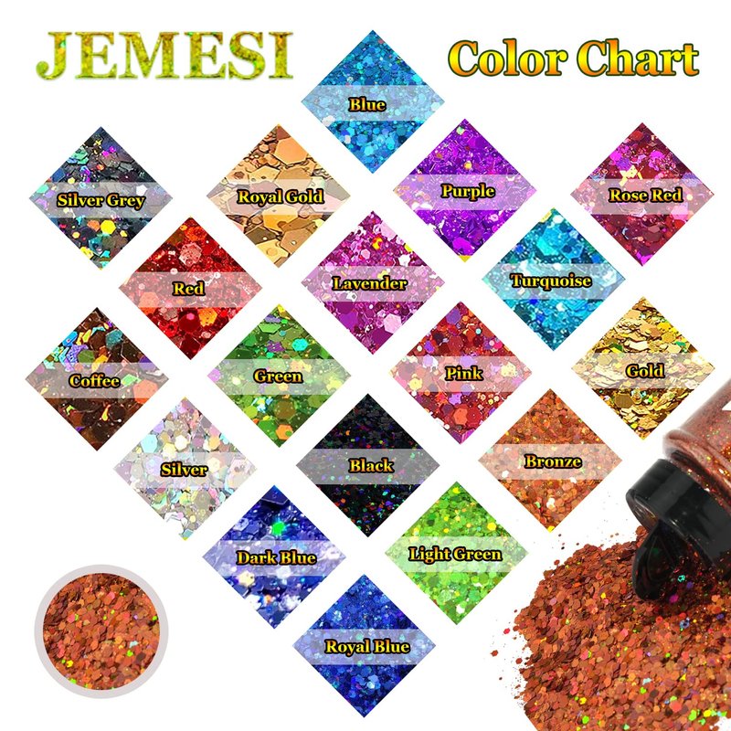 - ✅ Unlimited creativity: Those glitters are super creative for DIY lovers. You can use the chunky glitter to decorate any art craft you like, like making resin jewelry, epoxy tumbler, slime, collages, cell phone's case, glasses, nail arts, eye makeup, body arts, holiday decorations, dancing decorations, and more.