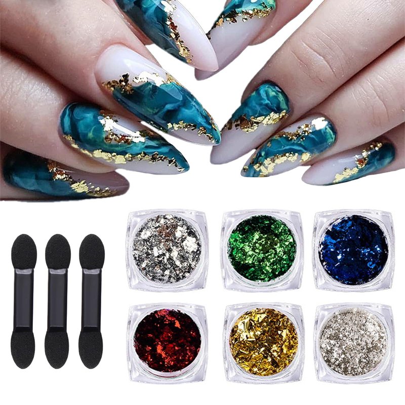 Holographic Nail Art Foil Glitters Kit 6 Boxes 3D Nail Glitter Flakes Nail Art Supplies Confetti Sparkly Aluminum Foil Irregular Foil Glitter Nail Design for Acrylic Nails Decorations Accessories