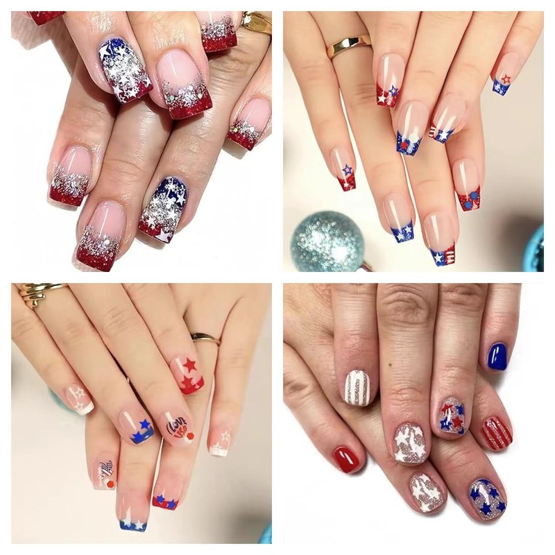 Holographic Nail Glitter Flakes, 3 Boxes Independence Day Nail Sequins for Nail Art, Red Blue White Nail Art Glitter, Loose Five Pointed Star Sequins for Nails, Acrylic Nails Supplies for Women Girls