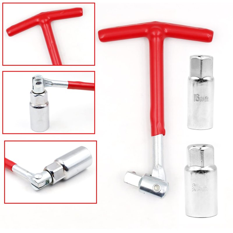 Holoras T-Handle Universal Joint Spark Plug Socket Wrench, 16mm 21mm Socket (Red)