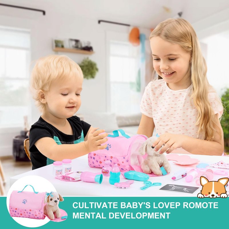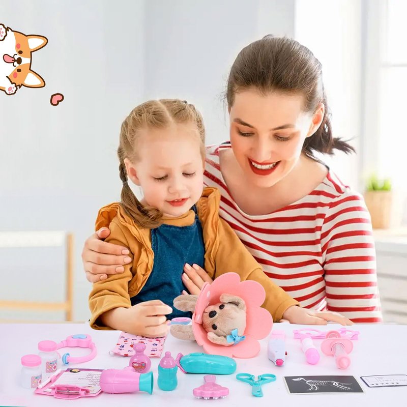 - Pretend Kids Doctor Kit Toys - The doctor kids toys let kids better immerse themselves in the role of a doctor and experience fun and creative pretend play with simulated medical tools and realistic doctor dress-up. Toddlers can wear adorable doctor outfits to care for their adorable puppy or other dolls. Great gifts girl toys 6-8.