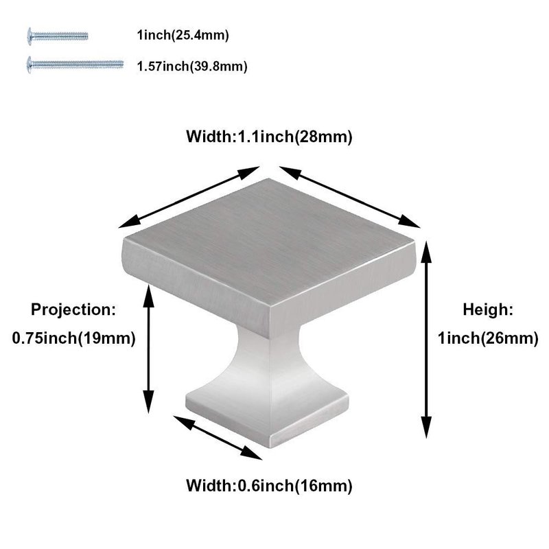 - ➡ PACKAGE INCLUDE - You would get 10 Pack solid square knobs.(All Individually Wrapped) Matched 1 inch & 1.77 inch screws which make the installation easier and will suitable for most thickness. If you need other size screws, please feel free to contact us.