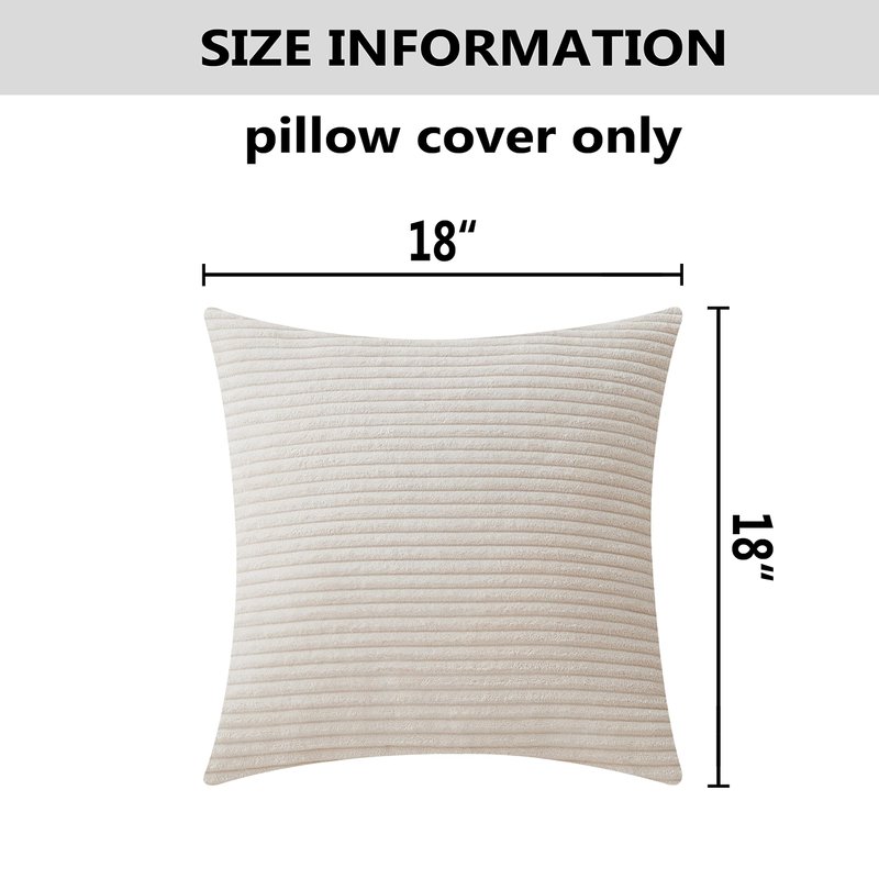 Home Brilliant Couch Pillow Covers Decorative Throw Pillows Set of 2 Striped Corduroy Plush Velvet Pillowcases Cushion Cover for Couch, 18x18 inch, Cream Cheese