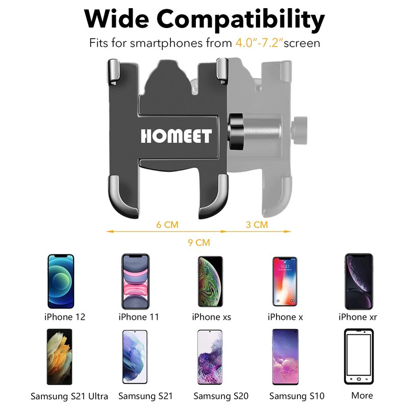 - 【6mm-10mm Mirror Diameter】HOMEET motocycle phone mount is suitable for motorcycles and scotters whose diameter of the mirror rod is 10mm. If your motorcycle mirror bar diameter is between 6mm-10mm, you can use these 6mm/8mm metal ring gasket to adjust the phone mount.