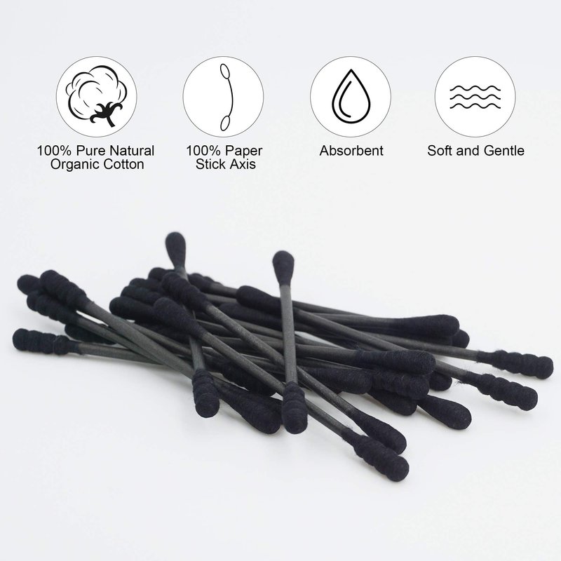 - Introducing the HOMEFOX Black Cotton Swab, perfect for your personal hygiene need. Made from organic cotton, our tightly wrapped Spiral Round cotton tip is soft and gentle on your skin, perfect for daily use. The black charcoal activated carbon qtip adds a gothic touch to your bathroom essential. Whether you need it for makeup application or ear cleaning, our swab will deliver the results you're looking for. Don't settle for ordinary cotton swab, upgrade to HOMEFOX and experience the difference!