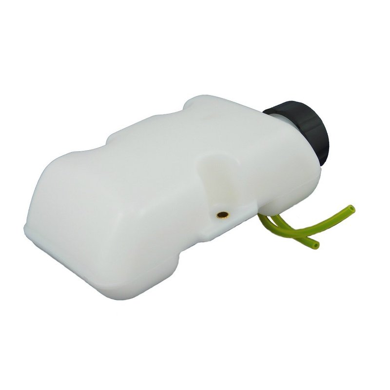 This OEM fuel tank assembly is made out of Plastic and it includes the fuel lines, fuel cap, and fuel filter. It is a common part in gas trimmers that is used to hold the fuel needed for the engine. It is very important to replace the fuel tank if it is cracked or damaged to avoid further damage or serious injuries. Make sure to drain the gas tank before starting a repair.