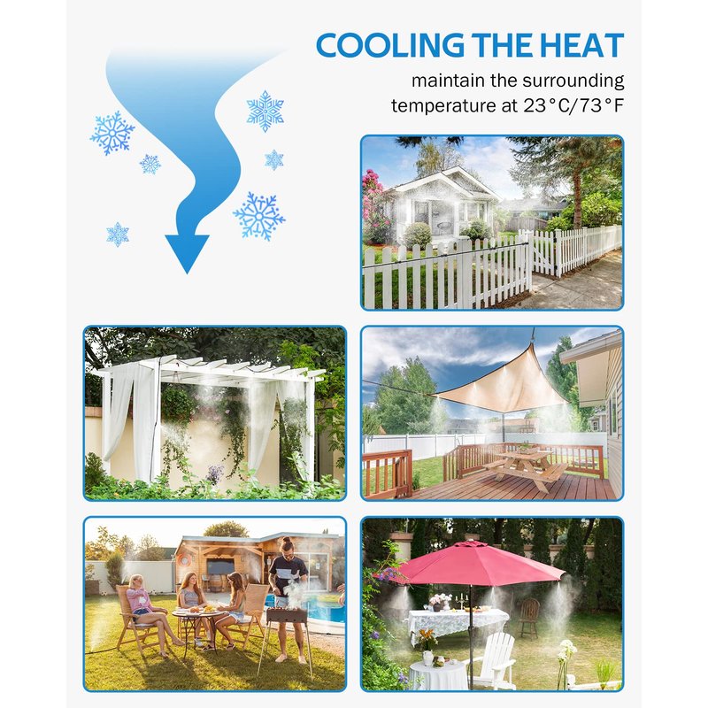 - Cooling the Heat: The misting system is perfect to cool down your outdoor area in the summer! It produces water mist, which absorbs the heat from the surrounding area and provides a cooling effect, maintaining the temperature at a comfortable 23°C/73°F