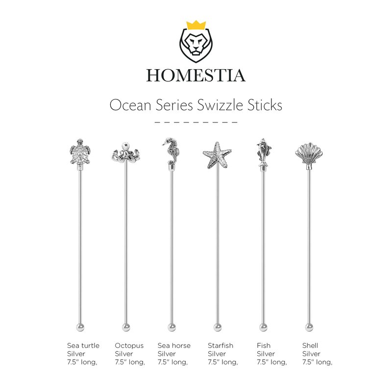 - CUTE BEVERAGE STIR STICKS: This 6 pcs set 7.5" coffee stirrer are our Sea Life series bar tools, with meticulously crafted 3D sculptures - shell, fish, seahorse, sea star, sea turtle and octopus. Great addition to complete your home bar collections, an excellent gife for those who loves nautical elements or Western and Mexican decor.