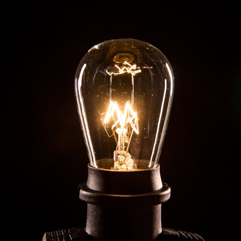 Hometown Evolution, Inc. Commercial E26 String Lights with 16 Gauge Wire (50 Foot 25 Socket, S14 11 Watt Clear Bulb)