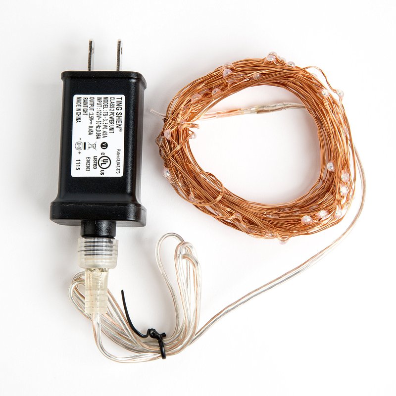 - Copper wire is 33ft long. Lead length is 36 inches from the plug to first mini light bulb