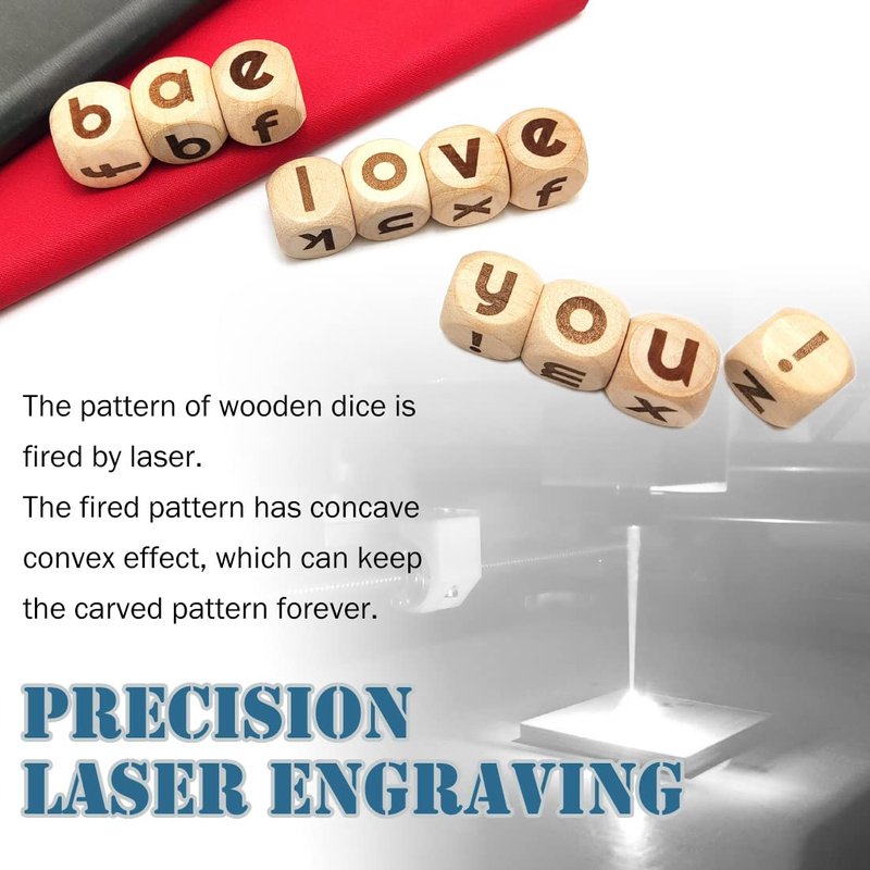 - Material & Process: Made of sturdy , solid Pine Natural wood,hand sanded edges and corners prevent dice from chipping or splitting. It uses a precise laser carving machine to carve. Six sides of each die are carved with six different patterns. After laser firing, the pattern displayed has a unique style.
