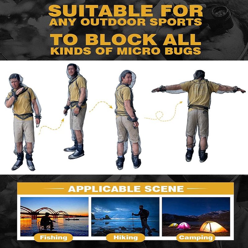 - 【Breathable Translucent Bug Net Suit】Anti Mosquito Netting clothing made of durable lightweight polyester no-see-um mesh for outdoor activities. Mosquito repellent jacket is breathable and non-toxic, giving you a lot of freedom to move freely and naturally. You might even forget that you’re wearing it!