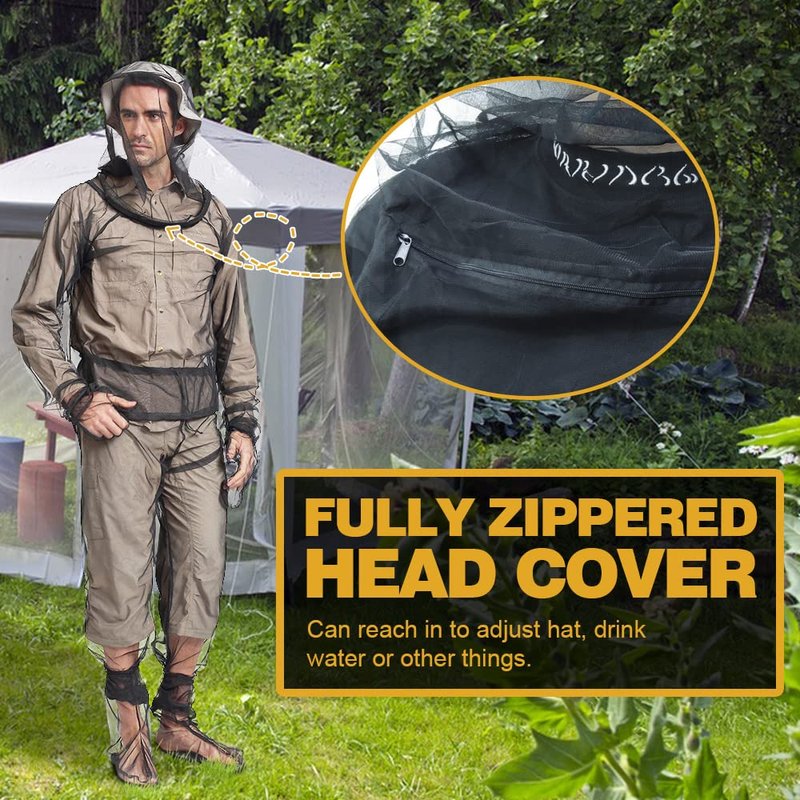 - 【Adjustable Drawcord & Zippered Head Cover】Unisex mosquito repellent jacket has a zippered head cover for an easy access to the face. Can enjoy eating or drinking without removing the entire gear. Adjustable cords are set on the cuffs, waist, wrists and ankles, which can adjust the size, length.