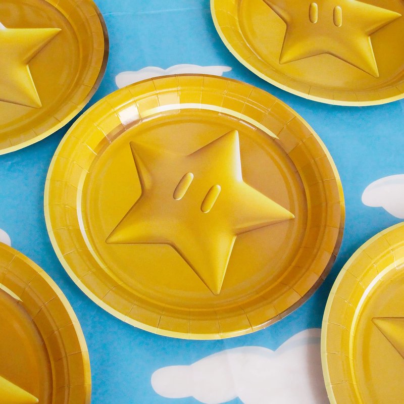 HOMEZZO 16 Coin Shaped Plates Set for Video Game Party Decorations