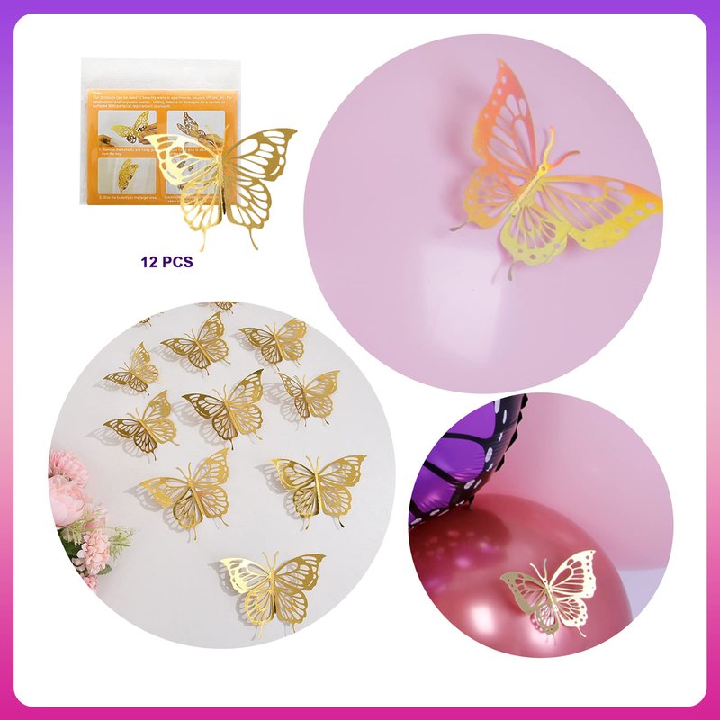 - SHINY GORGEOUS 3D HOLLOW-CARVED BUTTERFLY DECOR - Designed with Hollow and made of shiny paper material, which makes the butterfly wall decals look very beautiful and elegant. Included 12 pcs butterfly stickers.