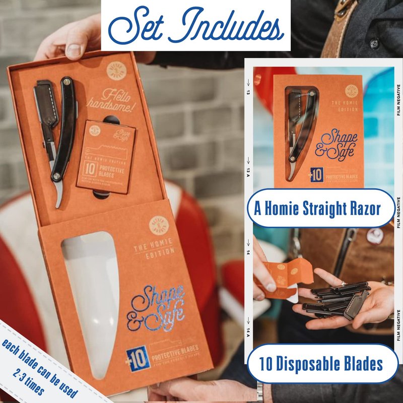 - A CLEANER AND SHARPER YOU: Like your grandfather used to, Homie provides you with a close, delicate shave. This is excellent for busy men who want to look their best without devoting a lot of time to it. Additionally, 10 refills of shaving blades are provided so you can consistently get a close, comfortable shave.