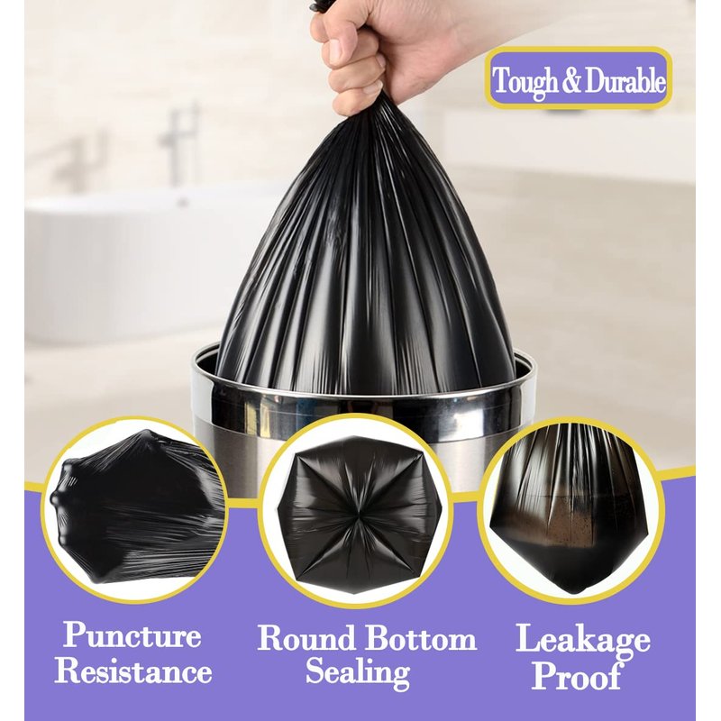 - ✔【Extra Strong & Leak proof 】 Small black trash bags use only Pure PE material for your safety and health. Environmentally-friendly bin liners refresh your home with original scent. These black small waste basket bags are strong to hold heavier garbage. Leak proof & stretchy, anti-puncture