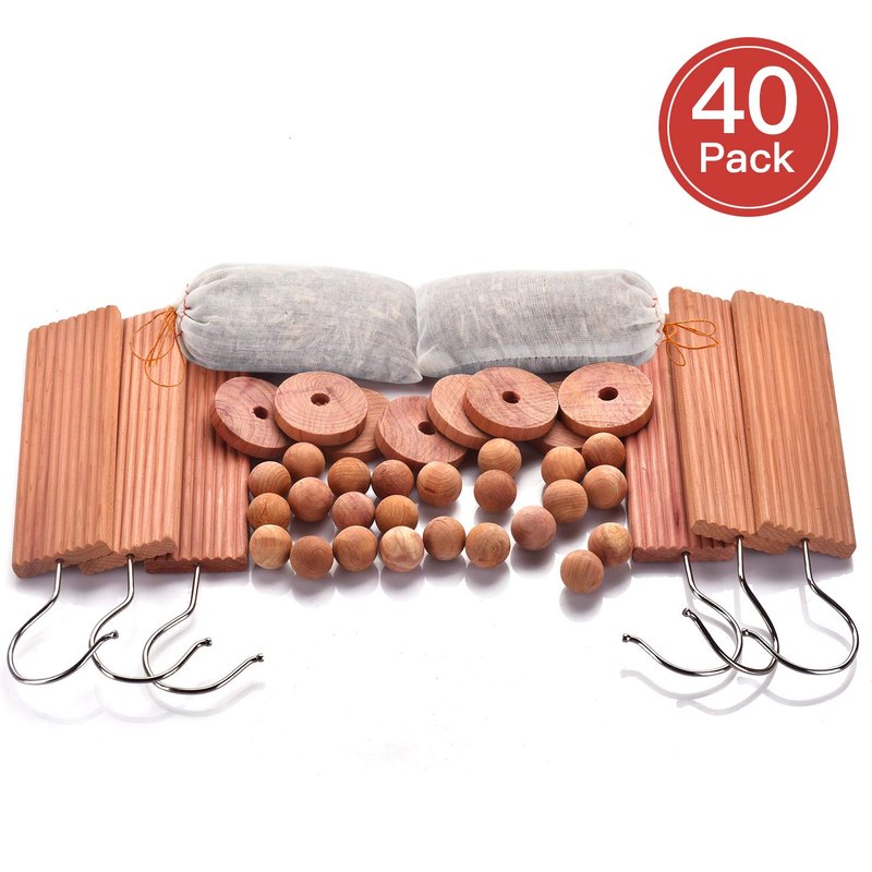 Homode Cedar Blocks for Clothes Storage, Cedar Wood Chips and Balls for Closets and Drawers, Fresh Scented Sachets, 40 Pack
