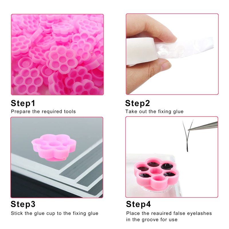 Designed in a delicate flower shape, each piece has a total of 7 compartments, which can greatly reduce the contact area between the glue and the air, effectively alleviate the drying of the glue, and will improve the speed of eyelash extensions.