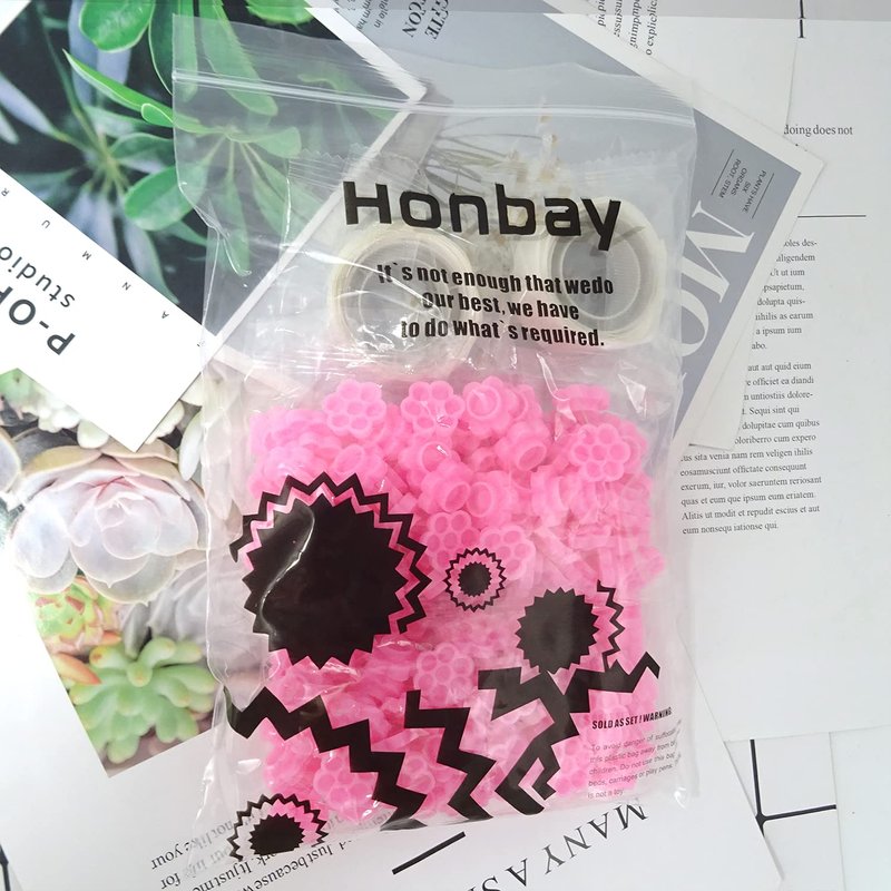 Honbay 200PCS Plastic Eyelash Extension Glue Holder Flower Shape Eyelash Glue Cup Pallet with 2 Rolls Glue Point for Lash Extensions Supplies