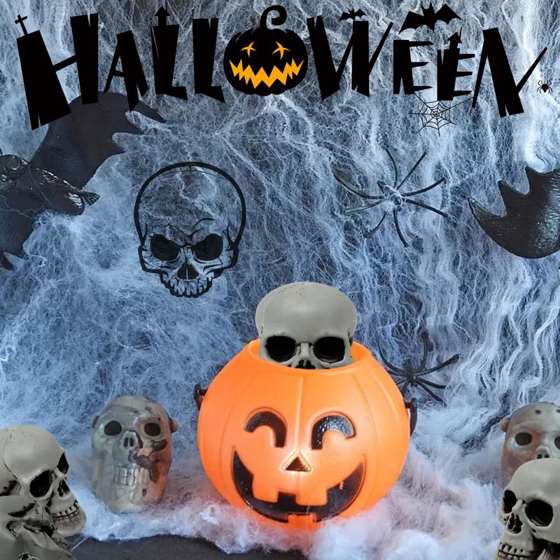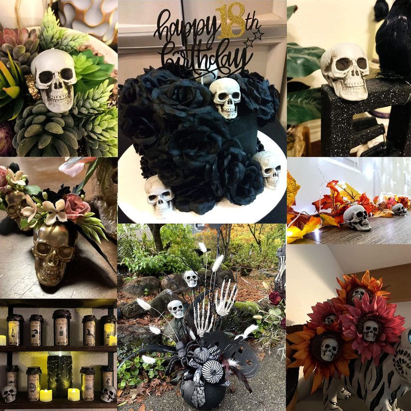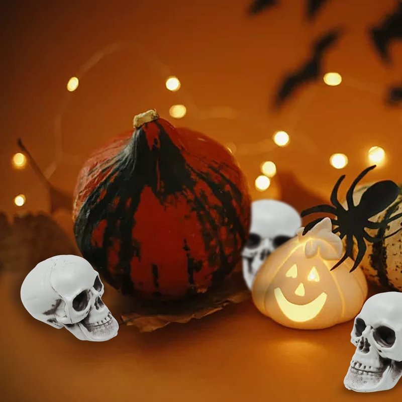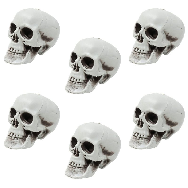 Honbay 6PCS Mini Halloween Skulls Decoration Plastic Fake Skeleton Head Table Decor Prank Props for Halloween Craft Party Favors