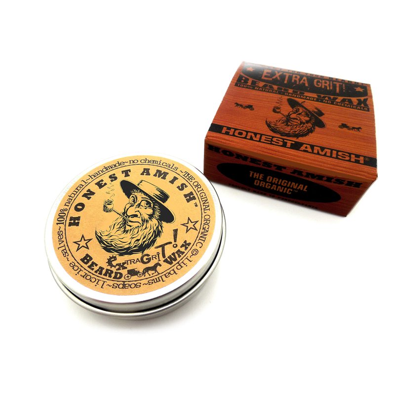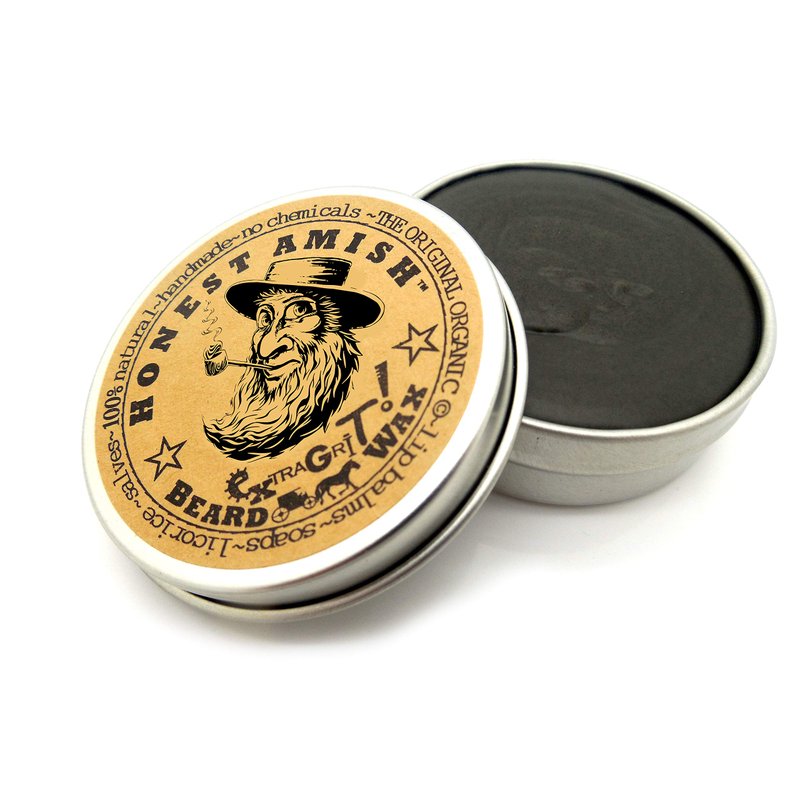 Aside from adding volume and control to your beard, our Extra Grit Beard Wax works exceptionally well as a hair product to help control, shape, and also relieve frizz in your hair. It's a favorite among our local hair stylists for an all natural alternative to the chemically ridden products that are on the market today. It's a blend of organic oils, locally harvested beeswax, and natural clay to provide your beard and hair with conditioning and a nice spiced scent from the natural essential oils within. Comes in a two ounce tin packed nicely in its own box, a perfect gift! Contains zero petrochemicals, no man made preservatives or chemicals, and every ingredient is directly from nature. Made here in the U.S. by hand for an honest wage. Needless to say, we know beards. Long before the current beard trend, way back before the 60's and 70's, and long before the 20th or 19th century for that matter...beards have been an integral part of Amish culture. The care for these beards have been passed through generations of men. Honest Amish Beard Waxes are blended from premium organic oils, fruit and nut butters, essential oils, botanical additives, and locally harvested beeswax. These recipes were created centuries ago to help maintain, care, and control growing beards while protecting and conditioning the hair follicles. Extra Grit is EXCELLENT for use as a hair product! "If you're not 100% satisfied with your purchase, please return it for a full refund."