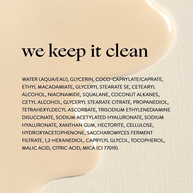- VITAMIN C, PEARL, and NIACINAMIDE: Infused with Vitamin C, Niacinamide (the ingredient known to improve appearance of skin tone), and Pearl, this lightweight moisturizer instantly boosts radiance and quenches skin for up to 24 hours of moisture