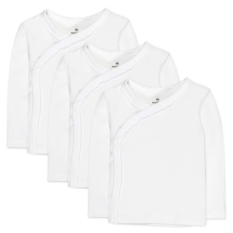 HonestBaby unisex baby 3-pack Organic Cotton Long Sleeve Side-snap Kimono Tops and Toddler T Shirt Set, Bright White, Newborn US