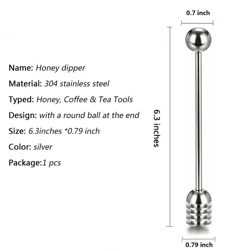 Honey and Syrup Dipper Stick Server Honey Spoon 304 Stainless Steel Wand for Honey Pot Jar Containers-6.3 Inch