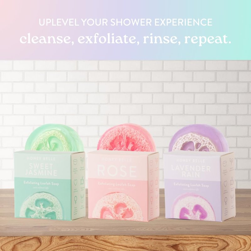 Honey Belle Exfoliating Loofah Soap 3-Pack Floral - Exfoliating Bar Soap with Loofah Inside - Cleansing, Moisturizing, Nourishing, Scrubby Soap - Plant-Based, Eco-Friendly, Vegan, Cruelty-Free