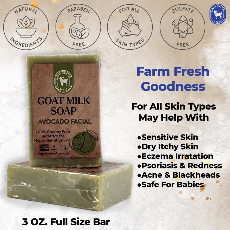 Honey Sweetie Acres Avocado & Goat Milk Facial Cleansing Bar - 3 oz Organic Moisturizing Soap - All-Natural, Handcrafted, Eco-Friendly - Made in USA